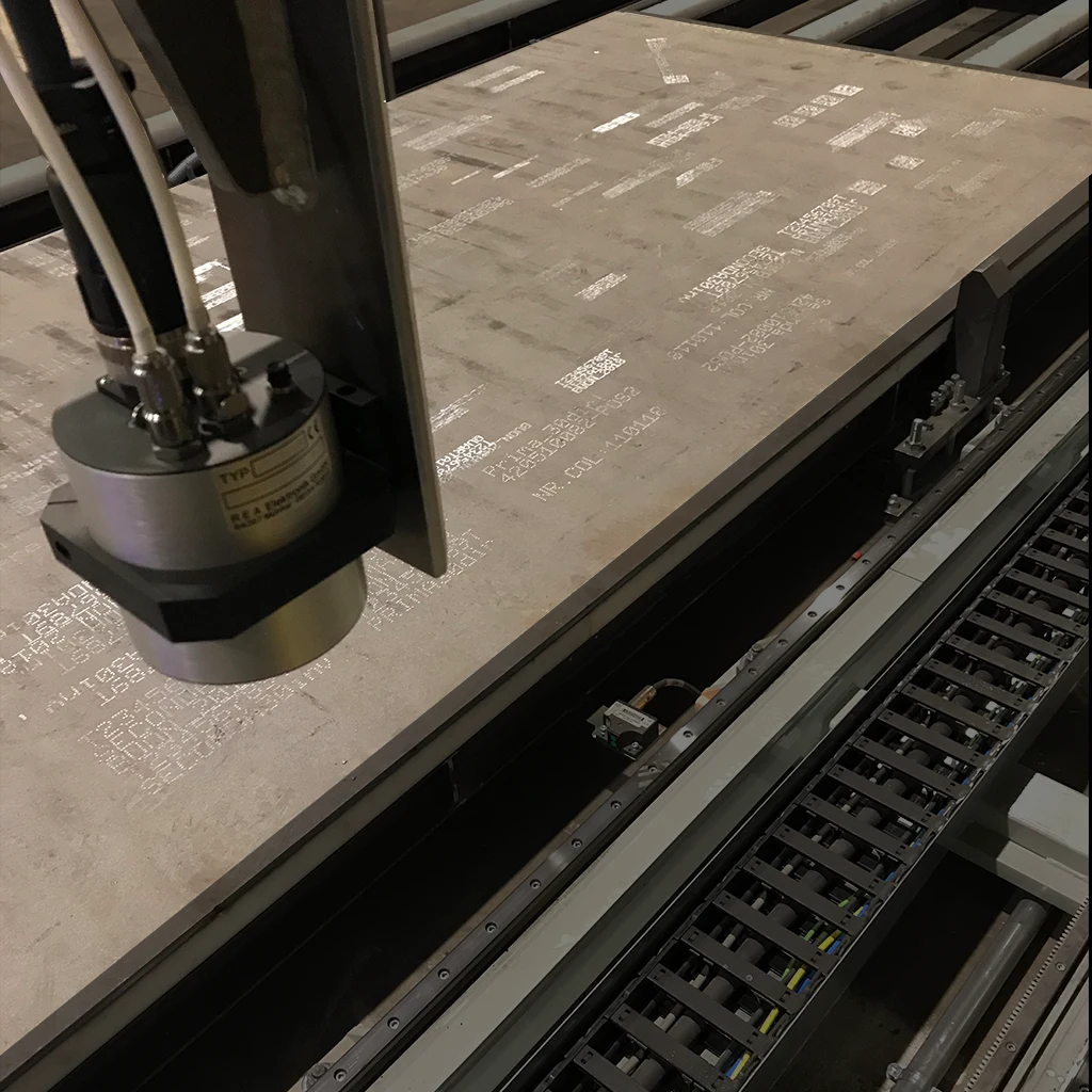 Alping Italia's solution for marking identification codes on inkjet plates. This automatic system guarantees high-quality identification marking using unique DataMatrix codes.
